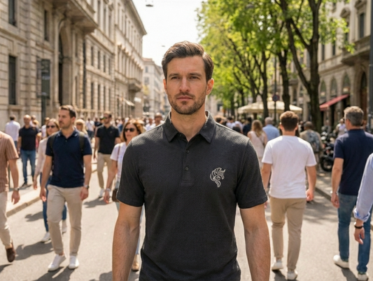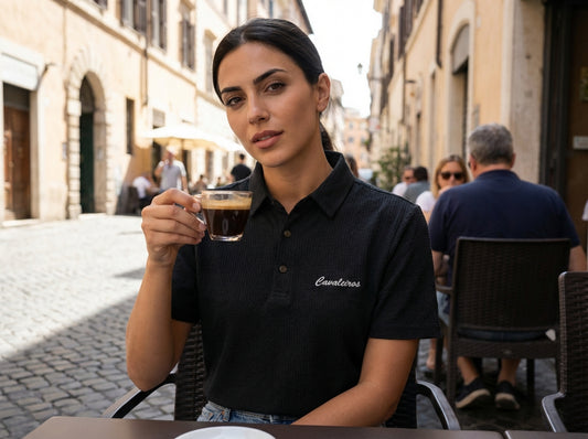 NEW【CAVALEIROS.】ドライタッチ・ジャカード スクリプトポロ Black