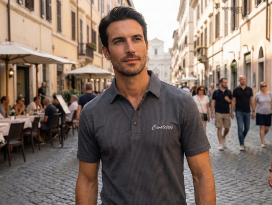 NEW【CAVALEIROS.】ドライタッチ・ジャカード シグネチャーポロ NavyGray